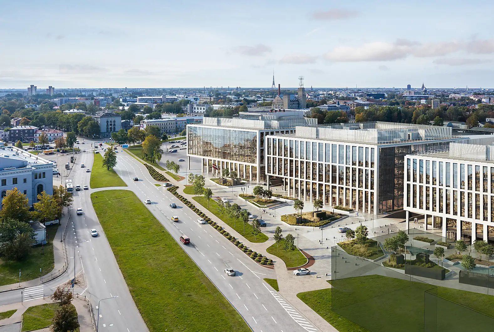 The six-storey modern office buildings, with a two-level underground car park and a public space connecting the complex into a single whole, have been designed and developed in accordance with the international standard for sustainable buildings, BREEAM New Construction Excellent.