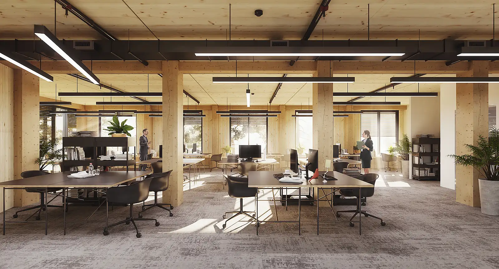 Office spaces ideally adapt to employees' daily routines and deliberately encourage creative collaboration through dedicated workshops and team areas, as well as digital collaboration tools (such as video walls, surface nodes, screens). Intelligent networked building infrastructure (e.g. sensors, smart meters) also allows cost-effective and sustainable management of the basic functions of the building (e.g. use, energy consumption). That area flexibility allows companies to cut back on office spaces.
